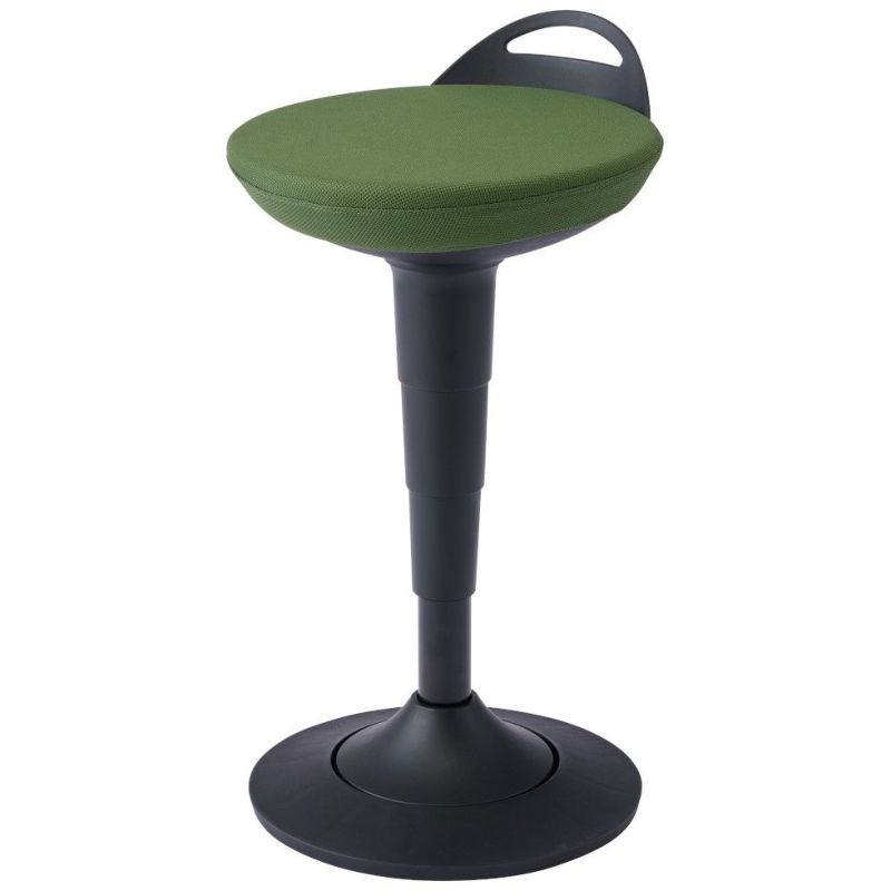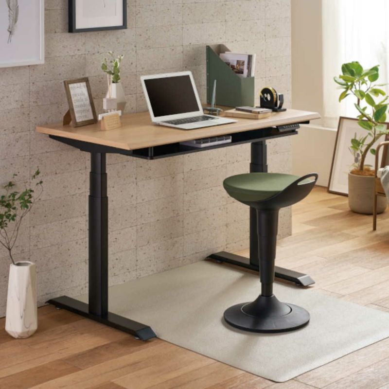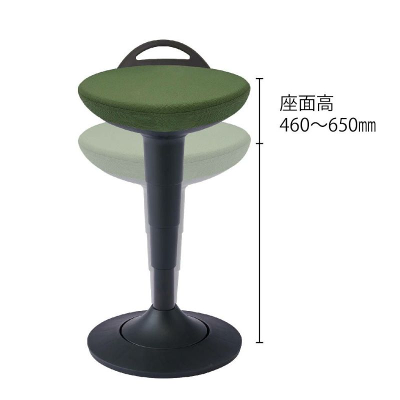 昇降デスクにも最適な座面高のスツール。座面がスイングするので中腰の姿勢にも対応できます。