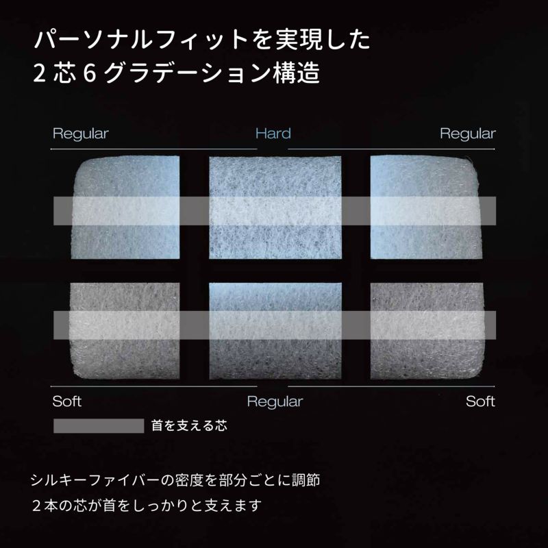 シルキーファイバーの密度を6つの部分ごとに調節し、寝姿勢にフィット。