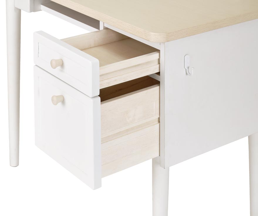 引き出しには木製取手を使用。