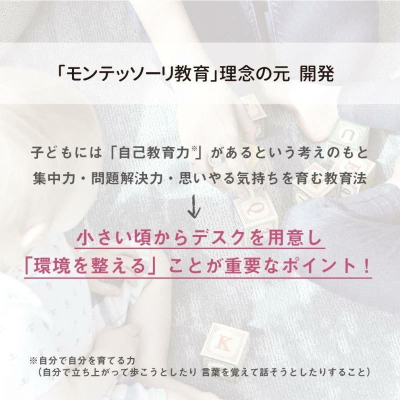 幼少期はキッズデスクとして、大きくなったら高さを変えて学習デスクとして使えます。