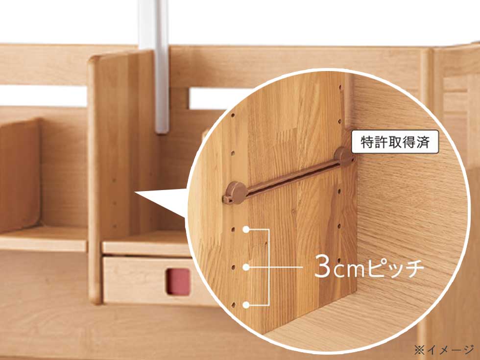 棚板の高さは、3cmピッチ6段階で調節できます。