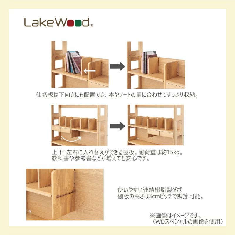 上下・左右に入れ替えできる棚板。耐荷重は15kg 。