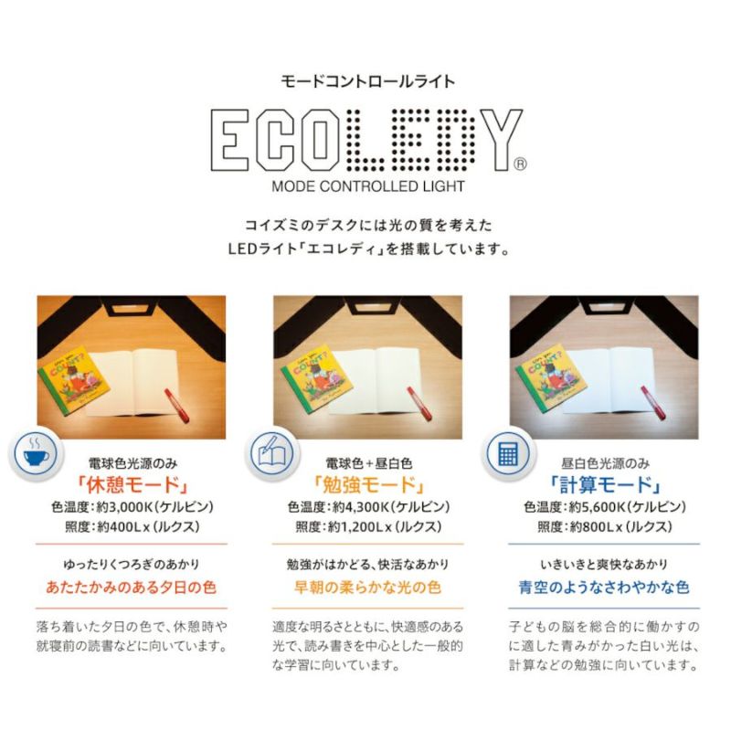 子どもの脳を総合的に働かすのに適した青みがかった白い光は、計算などの勉強に向いています。