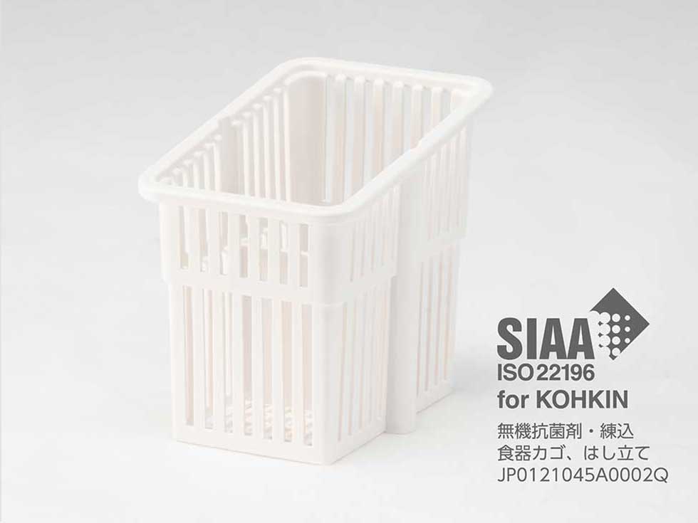 樹脂かご・はし立てに抗菌作用のある「銀イオン」を練り込むことにより、常に食器を清潔に。