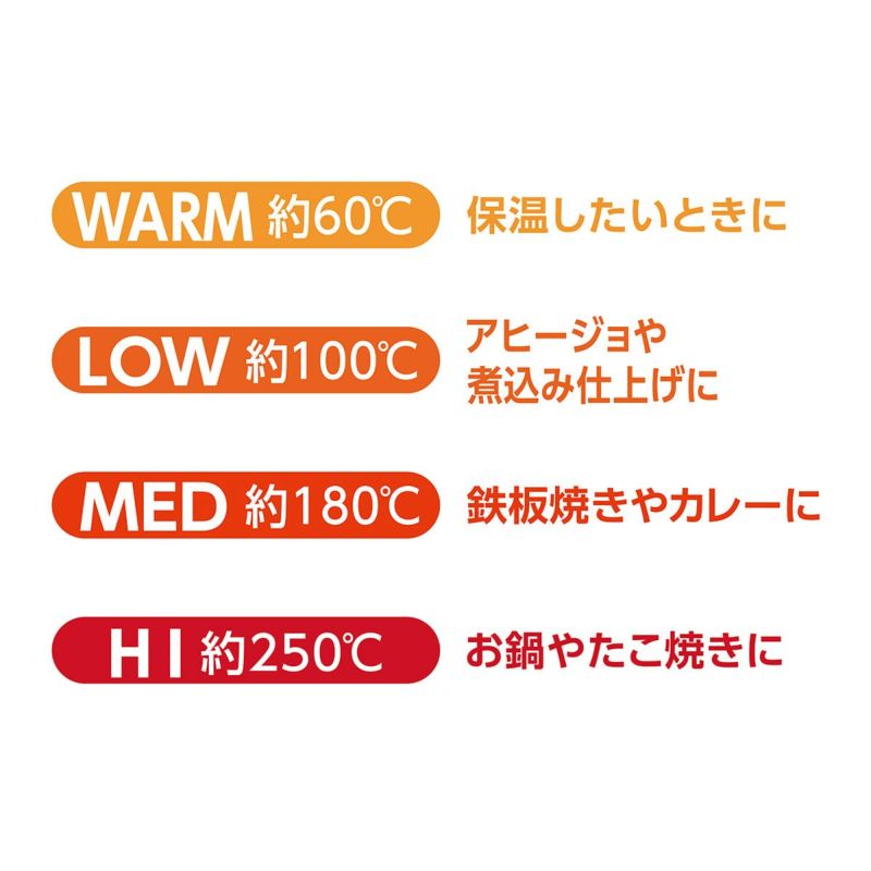 平プレート…温度切替で、多彩なホットプレート料理ができる
