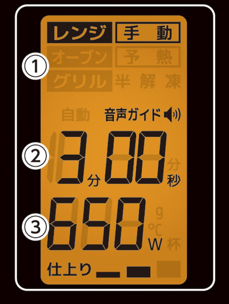 ③W(高周波出力)、オーブン温度設定