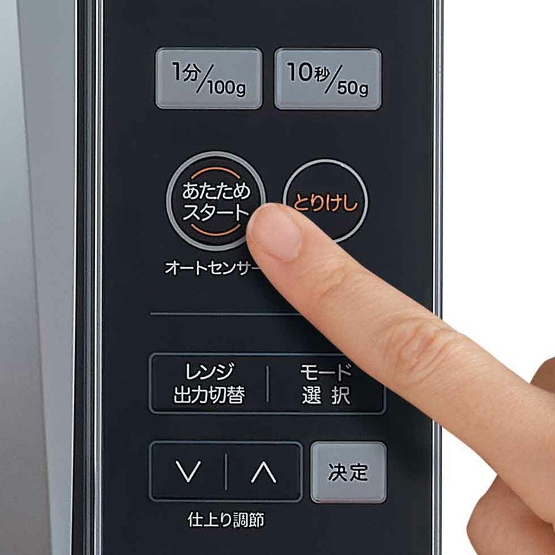 「あたため」ボタンを押すだけで、ごはんやおかず、冷凍ごはんなどを、分量に関係なく、ホカホカにあたためられます。手動レンジは2段階の切り替えが可能です。