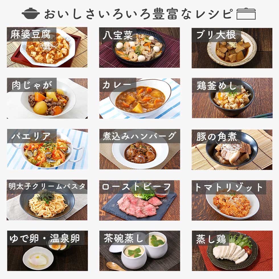 白米だけでなく、玄米、もち米、赤飯、おかゆ、炊き込みご飯なども楽しめます。