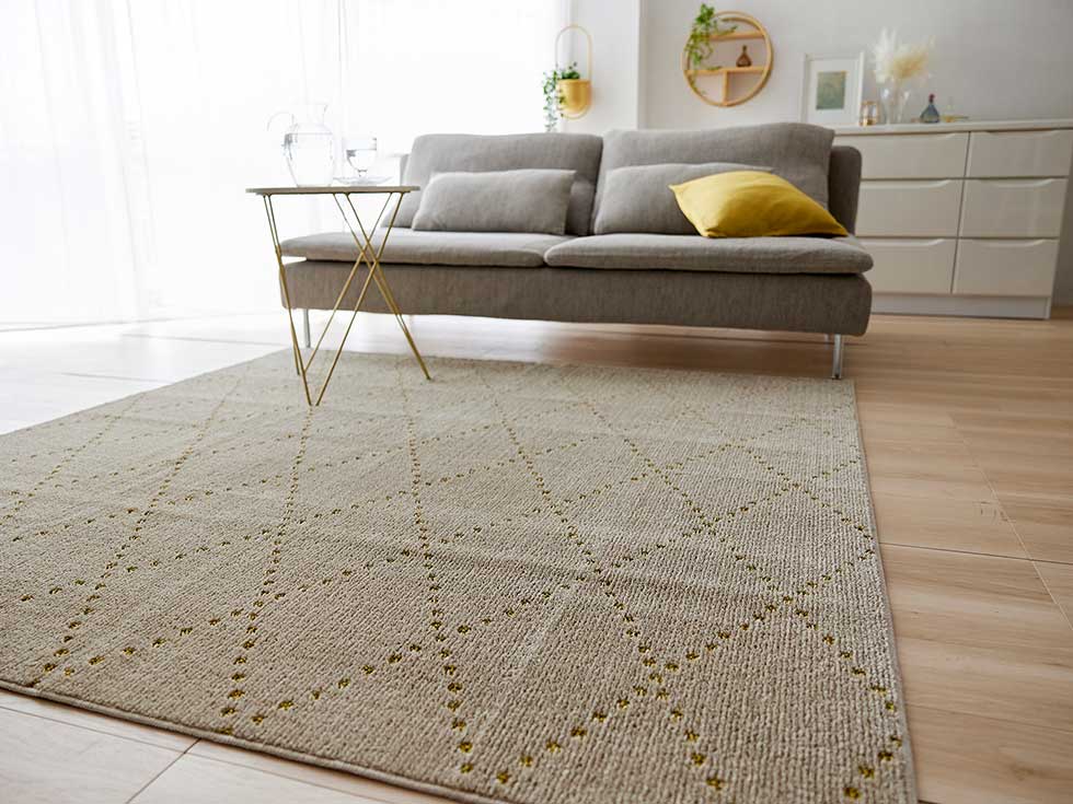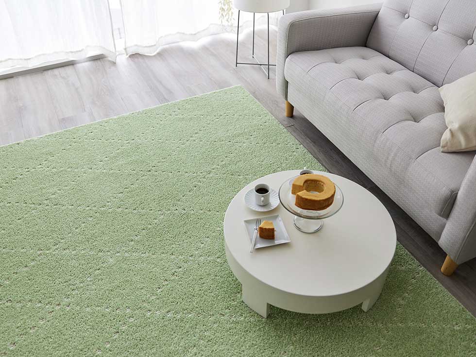 ドット部分はパイルの長さを変えており、凹凸があるのでデザインのアクセントに。
