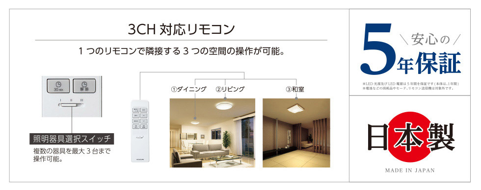 5年保証はLED光源及びLED電源部分を保証するものです。