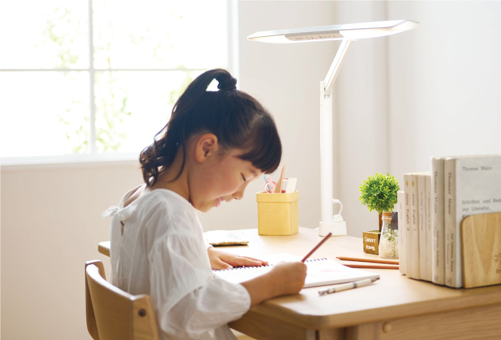 「勉強モード」:適度な明るさとともに快適感のある光で、読み書きを中心とした一般的な学習におすすめ。
