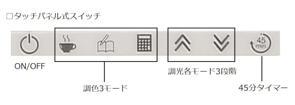 45分タイマーはスイッチを押すと45分後に自動で消灯します。小学校の授業時間に合わせて「45分間しっかり集中し休憩」のサイクルで集中してデスクに向かえます。