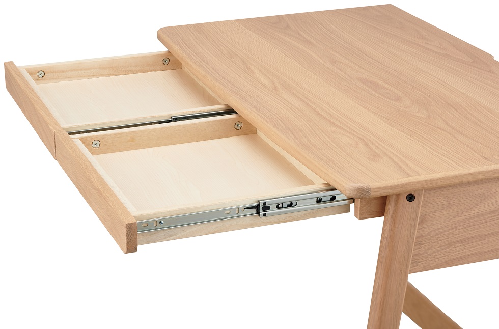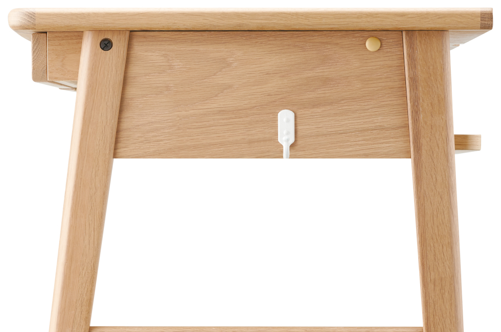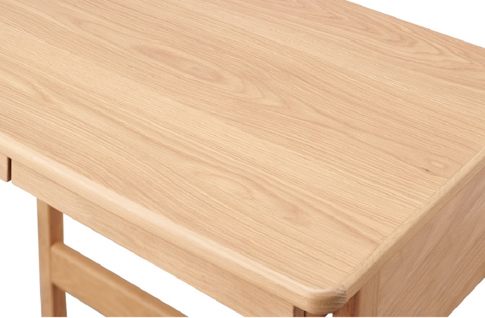 天板はホワイトオーク突板、脚と前板はホワイトオークハギ材を使用した高級感あふれる仕上げに。木目はひとつひとつ異なります。
