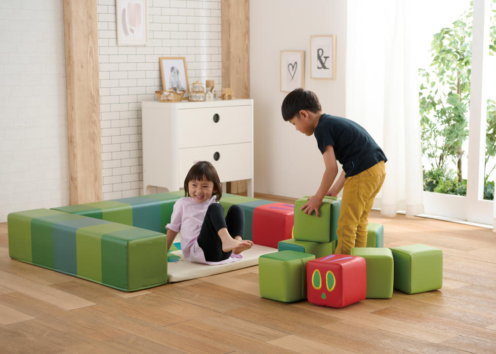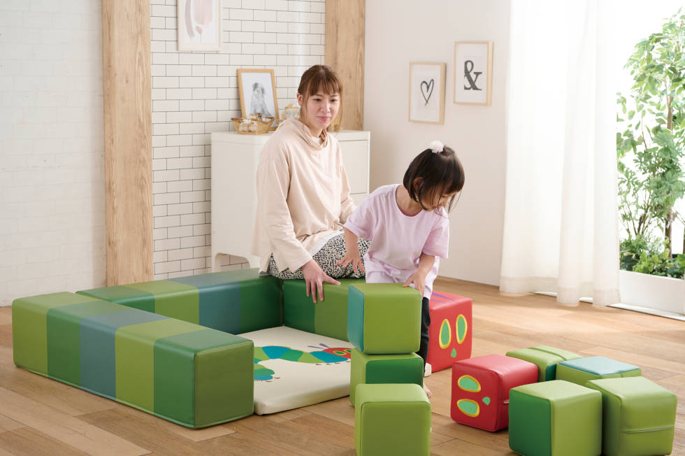 世界中で愛されているエリック・カールの代表作「はらぺこあおむし」の世界観と共に、子どもたちの成長「体育・知育・心育・食育」を楽しくサポートする遊具