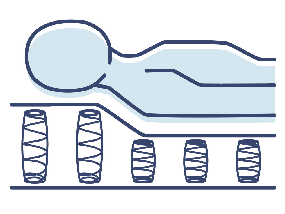 一つひとつ独立したコイルが「点」で身体を支え、体圧を分散して受け止める構造です。