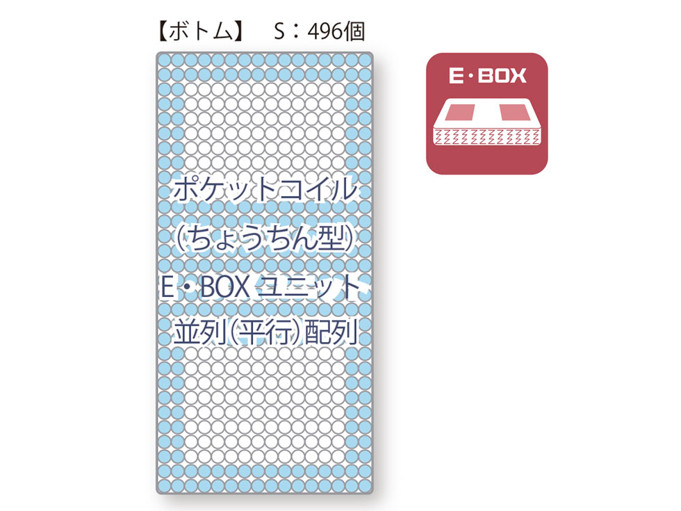 〇腰の部分のコイルが硬めのE・BOX仕様なので、寝返りがしやすい