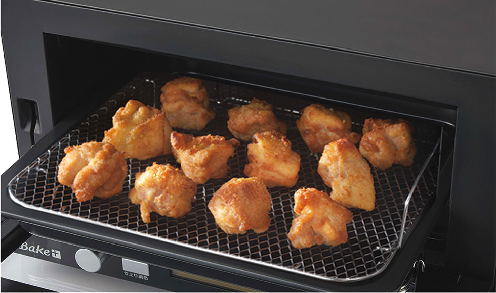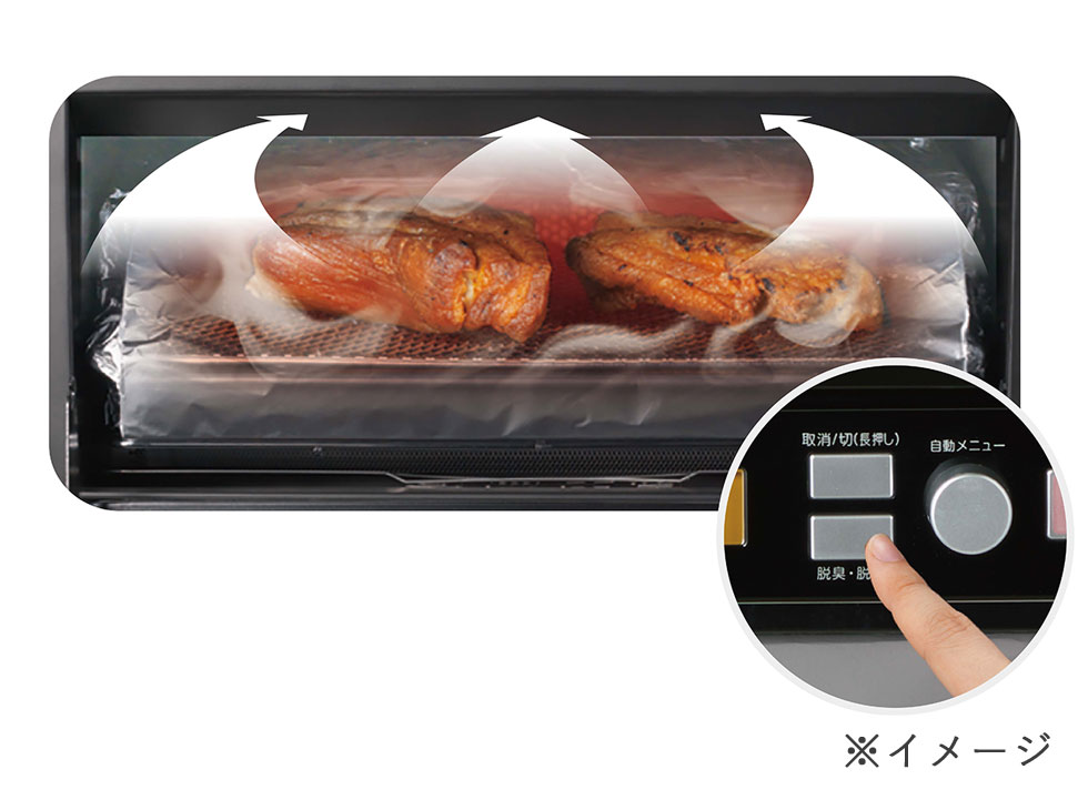 上下ヒーターの熱を、コンベクション機能のファンにより熱風として対流させ、庫内温度を素早く均一に高温に。