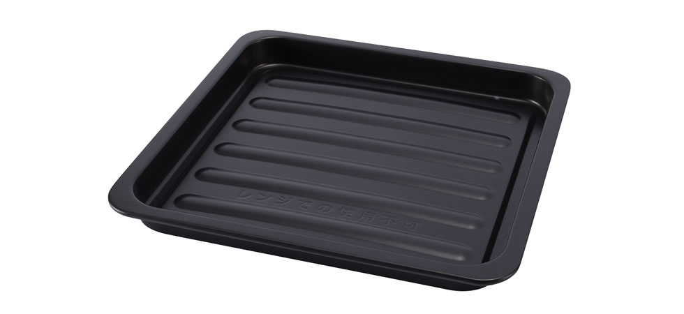 角皿で後片付け簡単。庫内もお手入れしやすいコーティング加工。