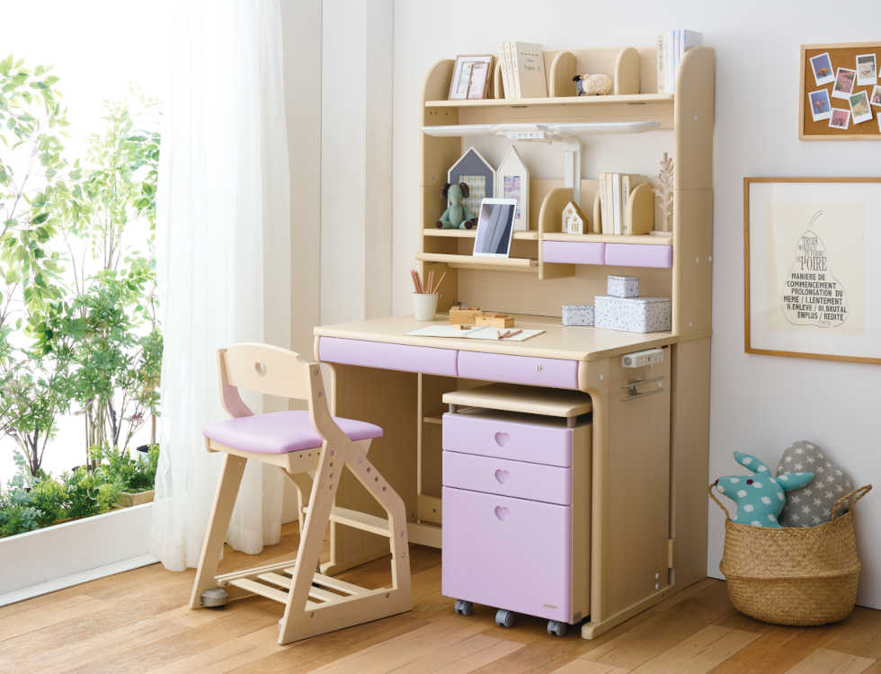 背もたれのハートのくりぬきがかわいいラブリーチェアです。木部のカラ-は木目のあるWW色(座面/ライトピンク・ライトブルー・パープル)と光沢感のあるPW色(座面/ライトピンク・パープル)です。