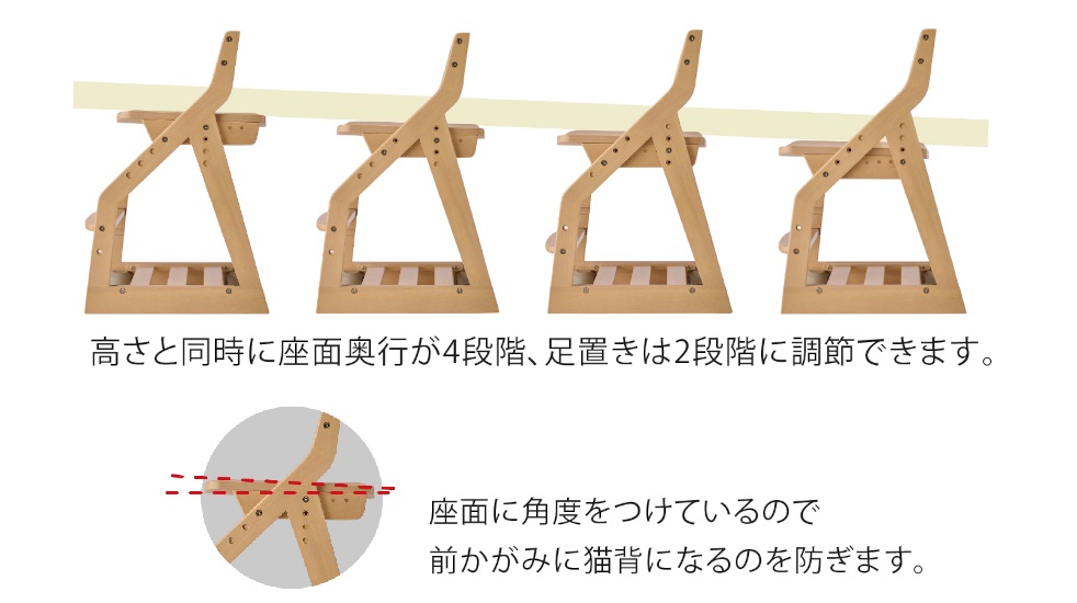 特徴〇座面高さ・前後調節(4段階)