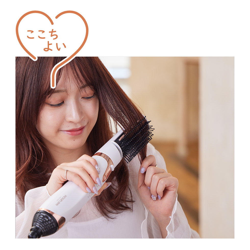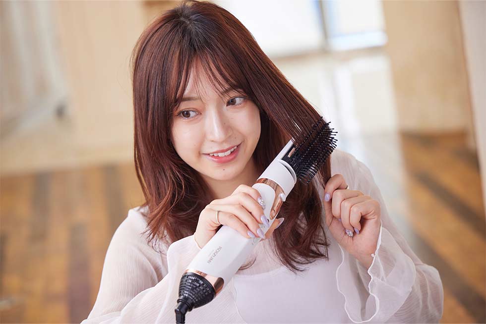 付属のブラシでヘアドライだけでなく、お出かけ前のヘアアレンジも。