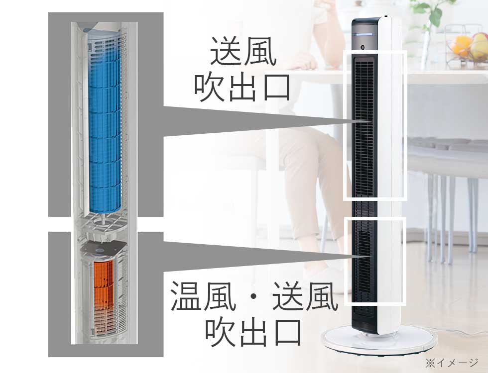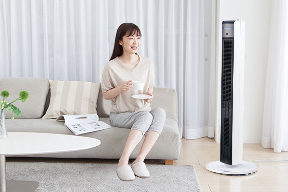 イスやソファに座っても全身にまんべんなく送風されるハイタワー設計