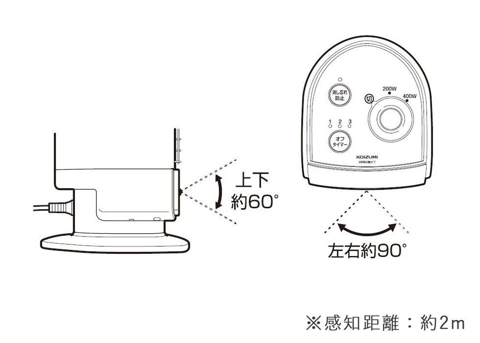 センサーの感知範囲から人がいなくなると、約2分後に自動的に運転停止します。