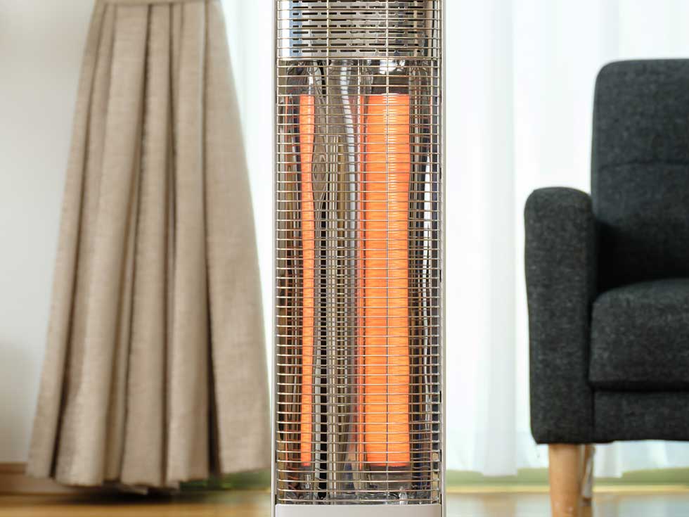 暖まる範囲が広い縦型のスリムタイプで、椅子やソファに座ってもしっかり暖かく。