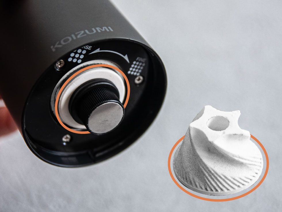 摩擦熱が少なく、粒度のバラつきが少ないため、より美味しいコーヒーに仕上げられます。