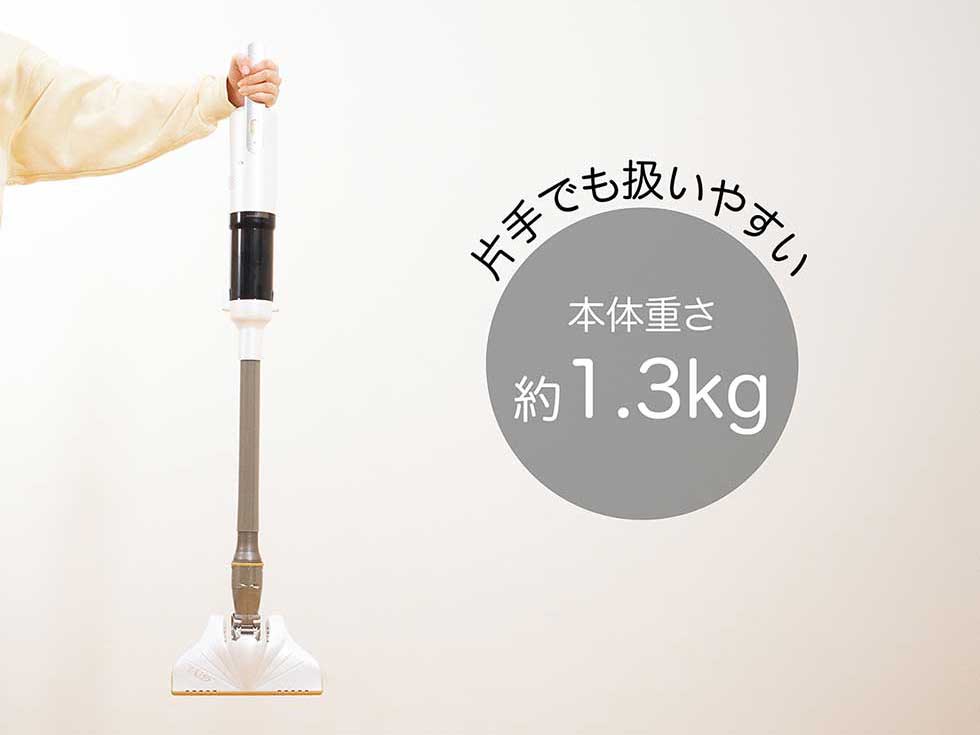 片手でラクラク持ち上げられる約1.3㎏。