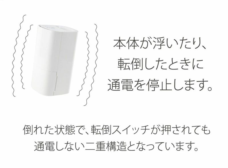 倒れた状態で転倒スイッチが押されても、通電しない二重構造です。