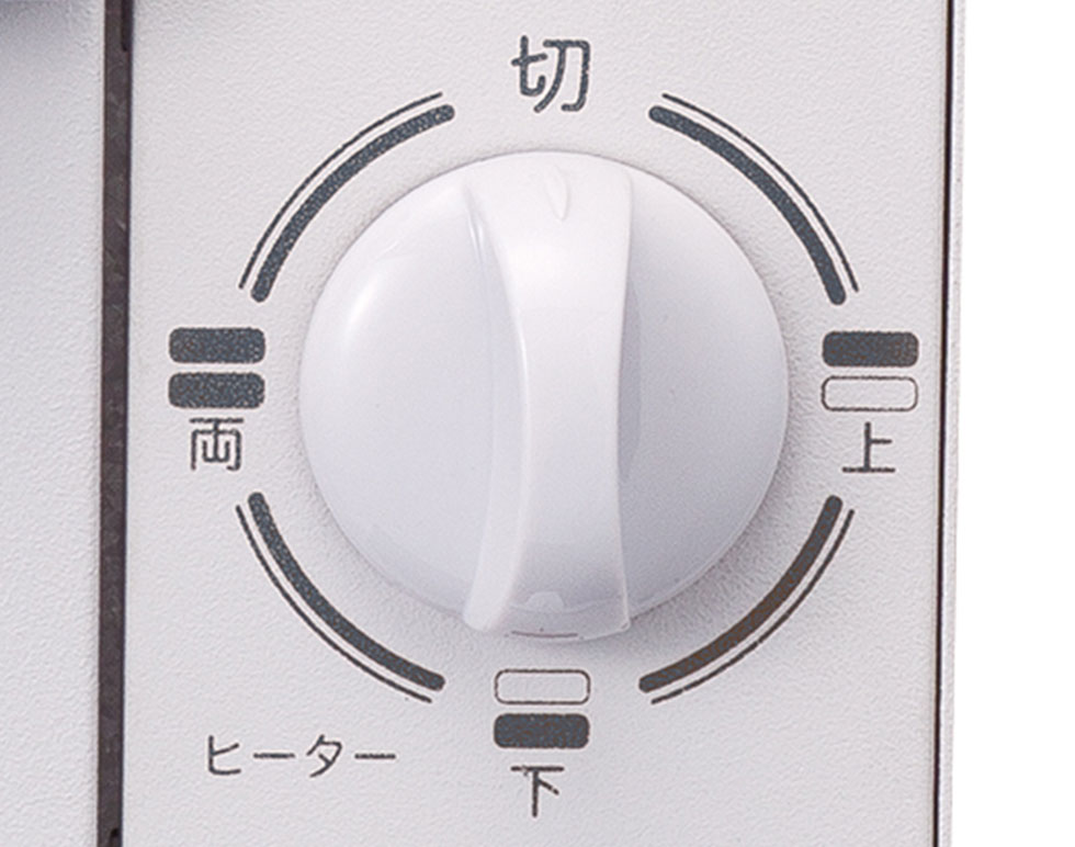 両面・上・下のヒーター3段階切替えで、焦げ目付けにも便利。