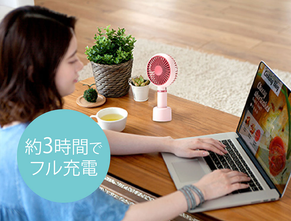 充電時間/持続時間充電時間:約3時間、持続時間:風量強 約60分