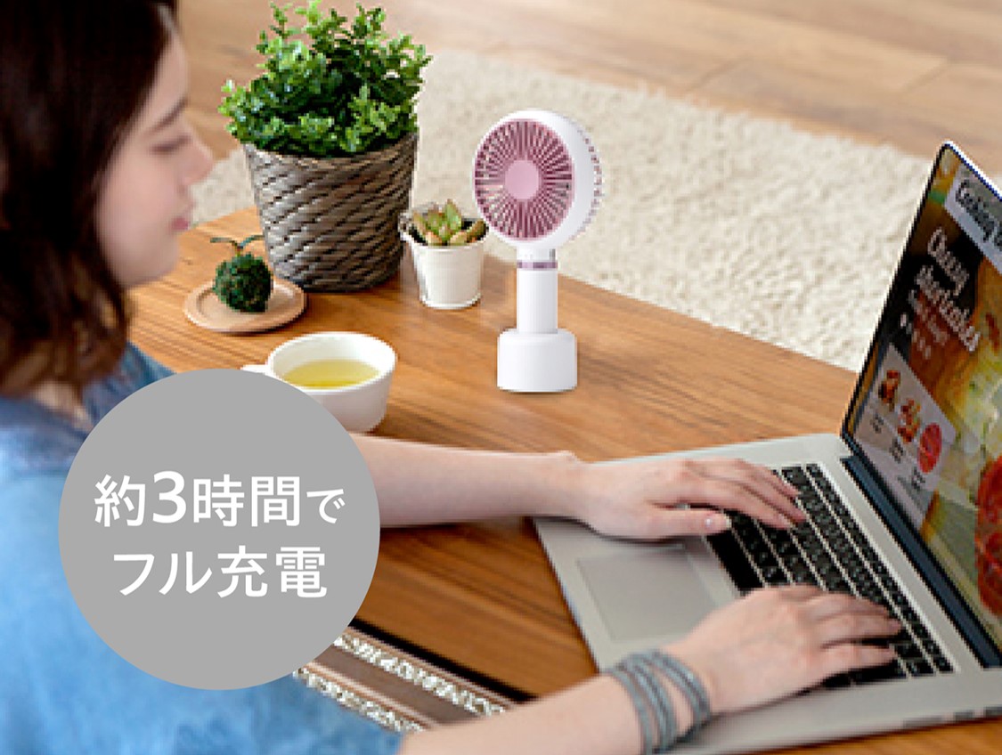 充電時間/持続時間充電時間:約3時間、持続時間:風量強 約60分