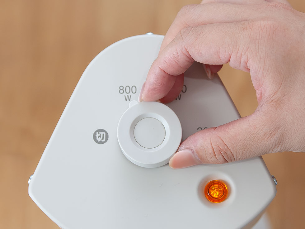 ワット数切替(200/500/800W)で暖かさを調整。