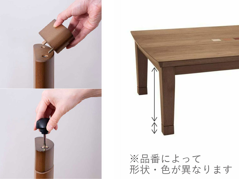 ウォールナットの突板天板の中央に象嵌があり、インテリア性の高いテーブルこたつです。