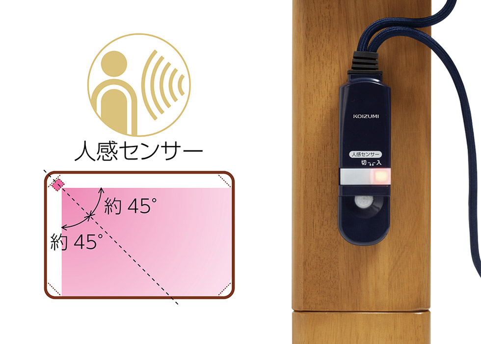 センサーがコタツの中を見張り、人がいないと約5分後に自動通電オフします。