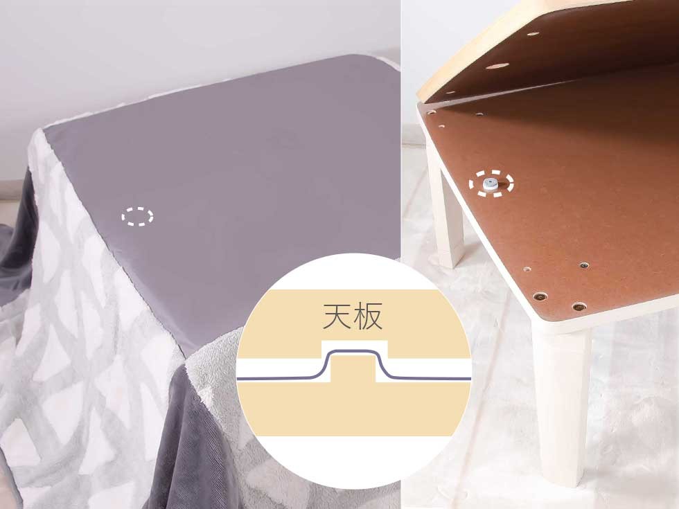 従来ヒーターに比べて出っ張りが少なく、こたつ内がゆったりつかえます。