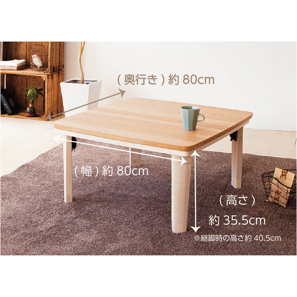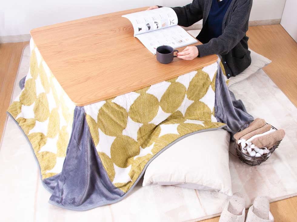 正方形 80x80cmサイズ、リバーシブルのこたつ布団付属