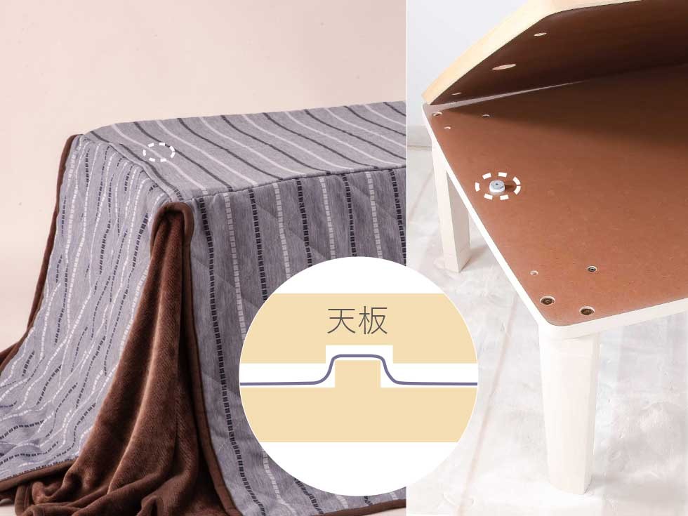 従来ヒーターに比べて出っ張りが少なく、こたつ内がゆったりつかえます。