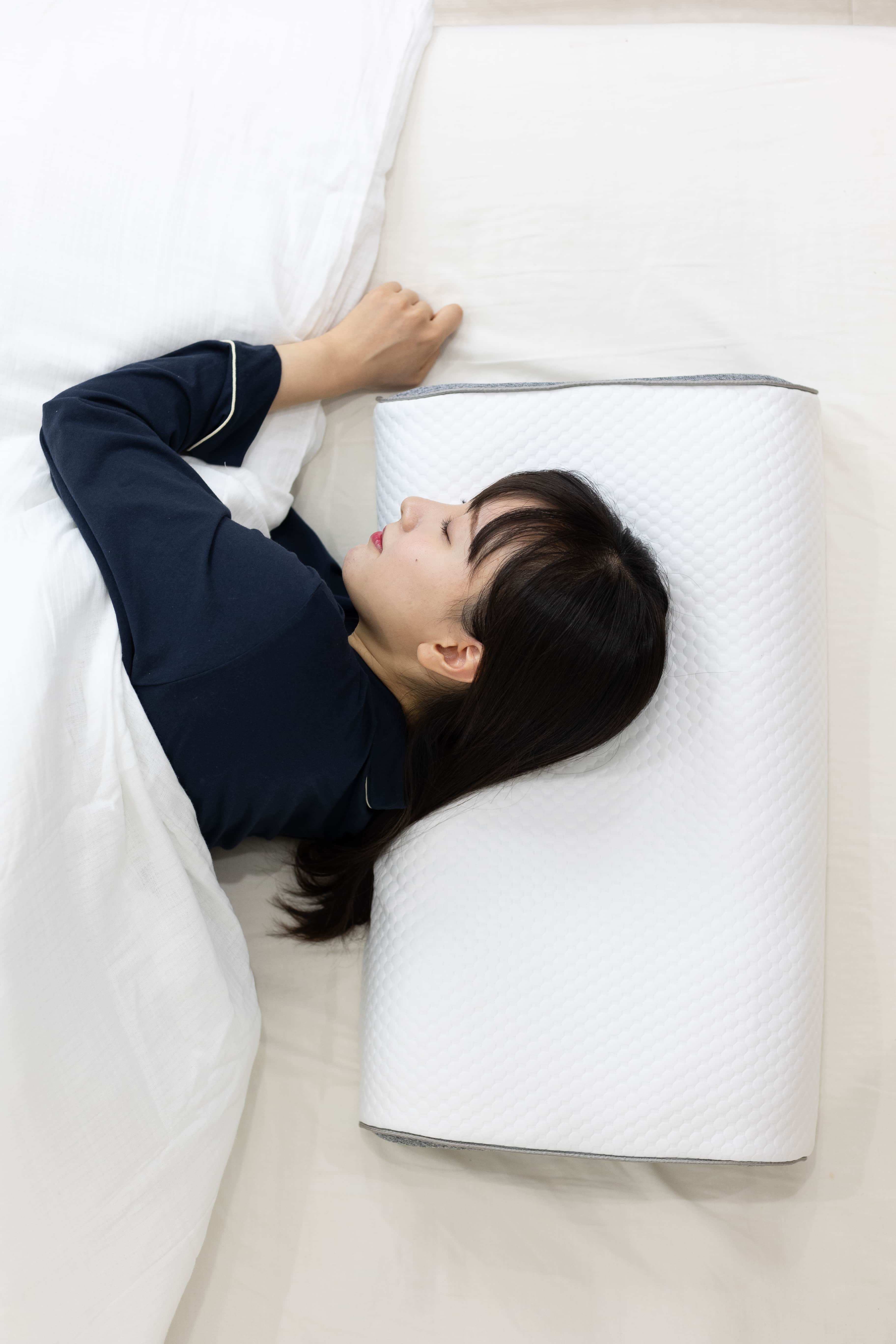 寝返りのしやすさを追求した、3D形状の洗えるまくら
