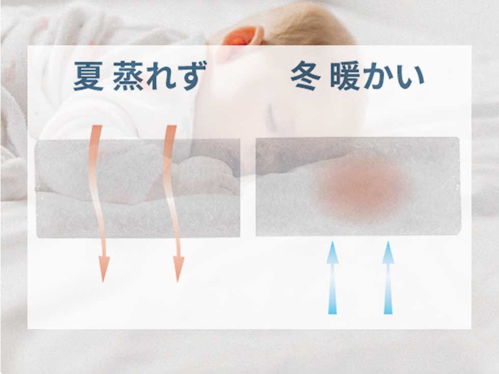 通気性と断熱性に優れており、「夏は涼しく」、「冬は暖かい」快眠環境を実現します。