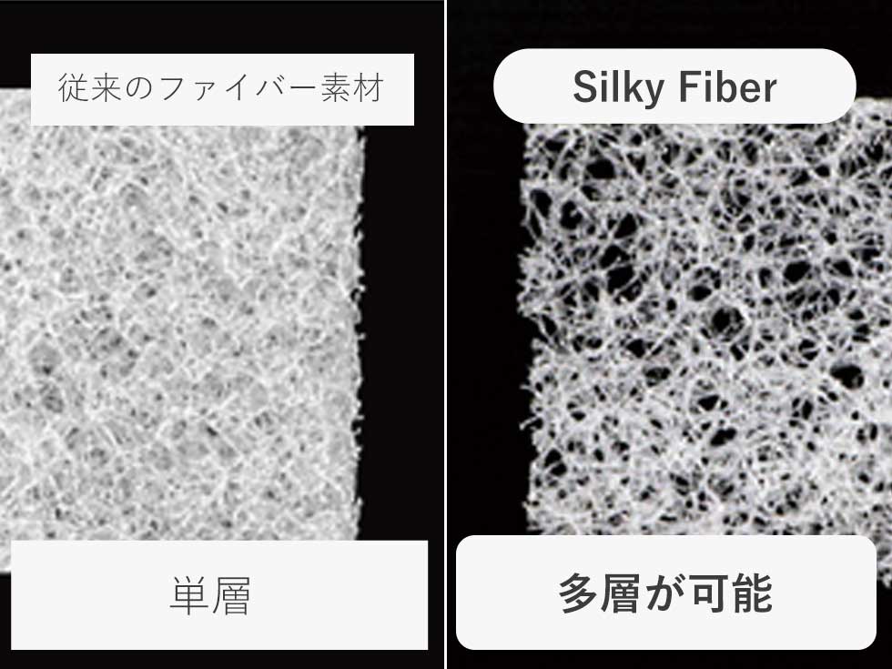従来のファイバー素材は単層であるのに対して、