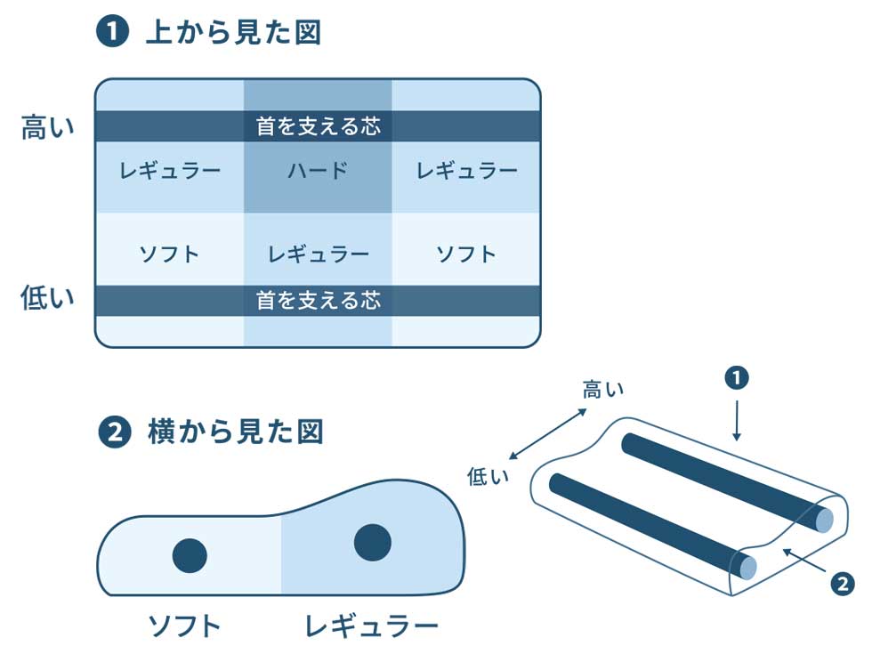 2本の芯がまくら内に通っており、首をしっかりと支えます。