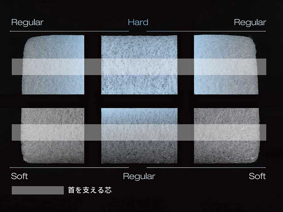 シルキーファイバーの密度を6つの部分ごとに調節し、寝姿勢にフィット。