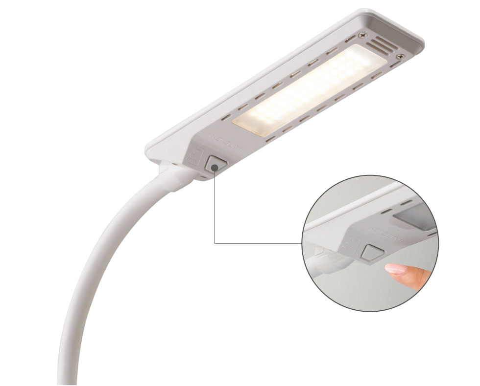 スイッチを押すごとに光源の点灯状態が変化します。作業環境に合わせてあかりの色が選べます。