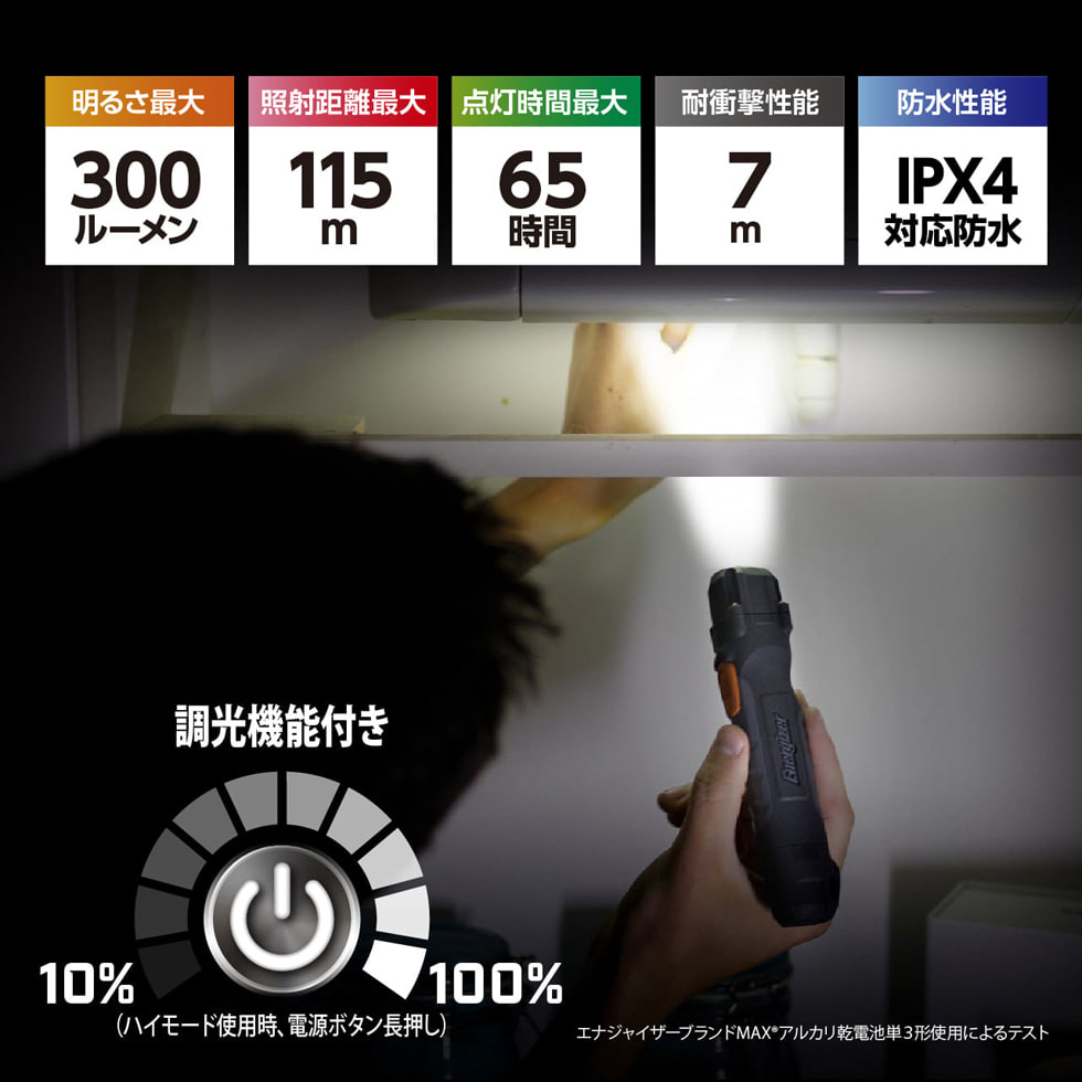性能テストにおける注釈*エナジャイザーブランド標準アルカリ乾電池使用によるテスト