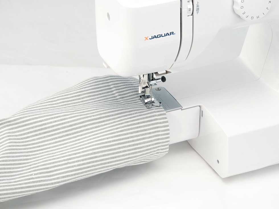 補助テーブルをはずすと、裾上げなどに便利なフリーアーム(筒縫い)もできます。