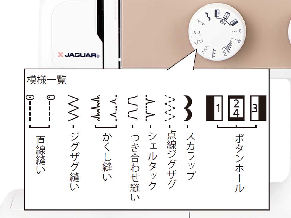 縫い模様や縫い目の長さは、ダイヤル式で簡単操作。