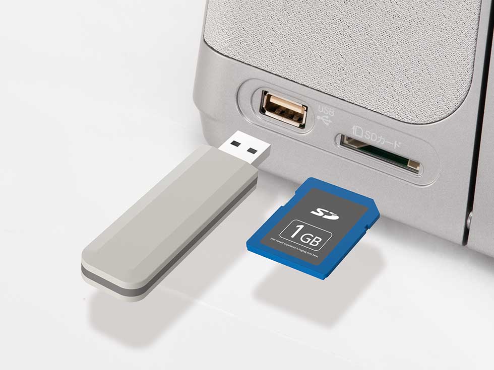 ラジオやCD、外部入力からSDカードやUSBメモリに録音可能。